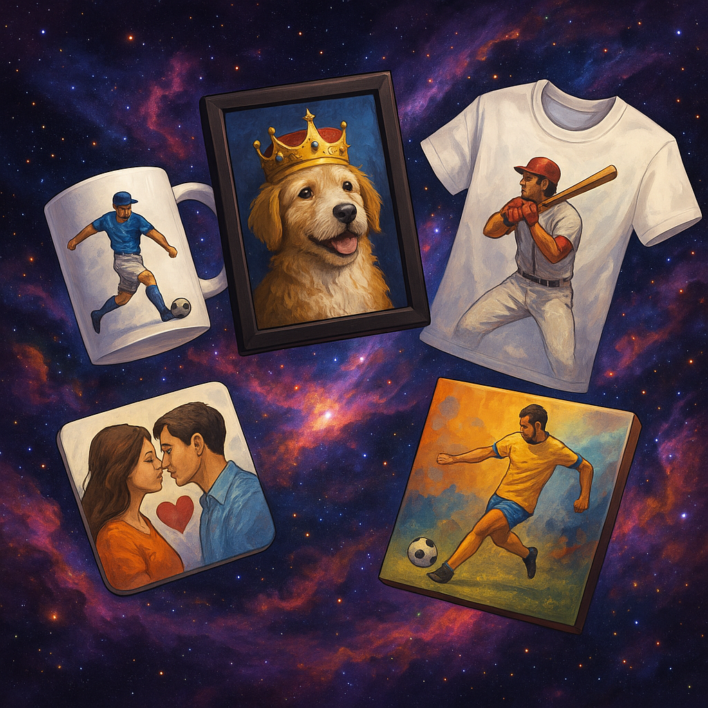 Describe what you want, watch AI create it, and get it printed on mugs, shirts, posters & more. Ships in ~5 days.